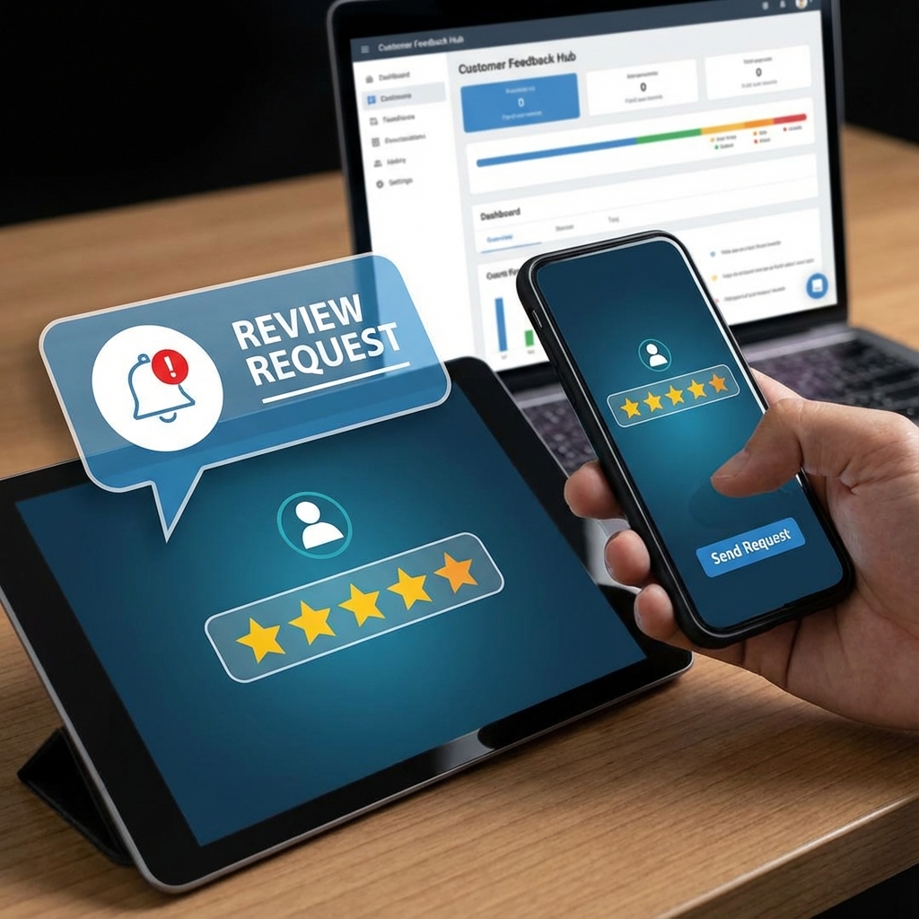 Tracourt Digital’s review request system makes it easy for businesses to generate more positive online reviews and build instant trust with potential customers. After a service or purchase, automated review request messages are sent via SMS or email, asking satisfied customers to share their experience. This timely follow-up significantly increases the number of reviews your business receives without adding extra work for your team.