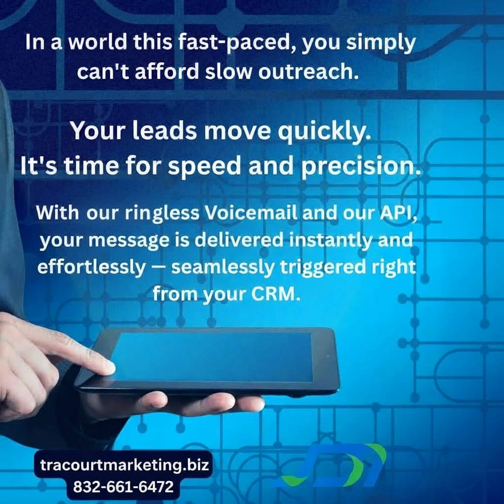 Ringless voicemail from Tracourt Digital is a powerful way to reach customers without interrupting their day. Messages are delivered directly to a recipient’s voicemail inbox without the phone ever ringing, making it a non-intrusive and highly effective communication tool. This approach is ideal for reminders, promotions, service updates, appointment confirmations, and reactivation campaigns.